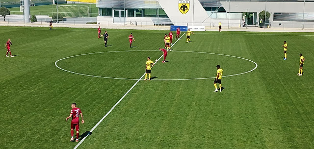 εκτέλεση φάουλ για την ΑΕΚ Β’ ο Λαμαράνα άουτ στο 10ο λεπτό…